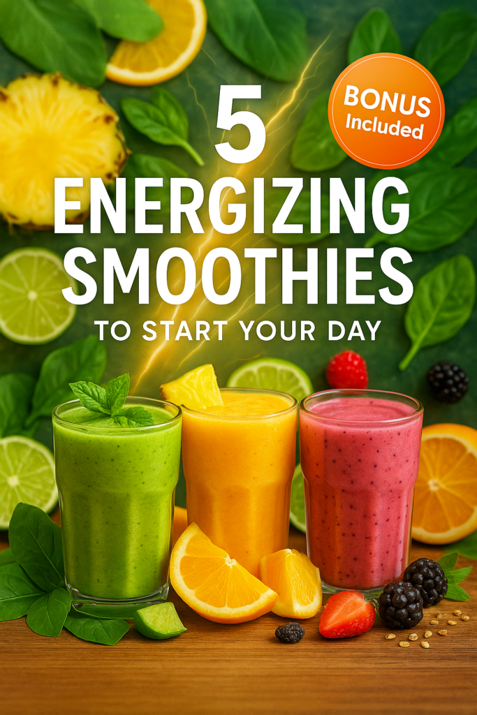 Get 5 delicious smoothie recipes designed to kickstart your morning with clean, lasting energy. These quick blends are packed with nutrients to keep you full, focused, and feeling your best — no complicated ingredients required!