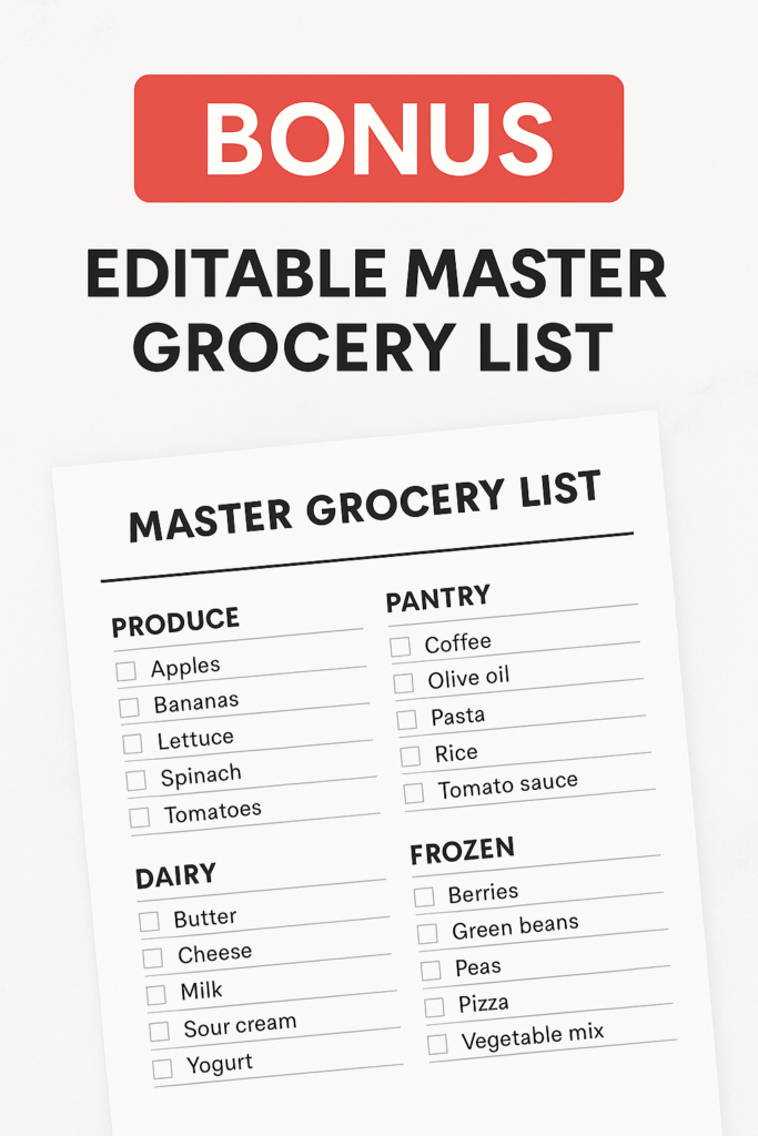 Editable Master Grocery List (value: $12)